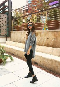Para um visual contemporâneo e elegante, experimente combinar uma camisa oversized com calça de alfaiataria e botas Chelsea.